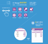 来自台湾的无线娱乐领导厂商aigale海联达推出的Ai-R103可用手机控制的智能云路由,精致小巧,内置超强天线设计,符合802.11n无线网络标准,最高传输速率可达150Mbps。支持海联达独家的Ai-Manager、WonderGate两款软件。其采用钢琴烤漆质感并配以动感波纹的设计,时尚、简约、大气